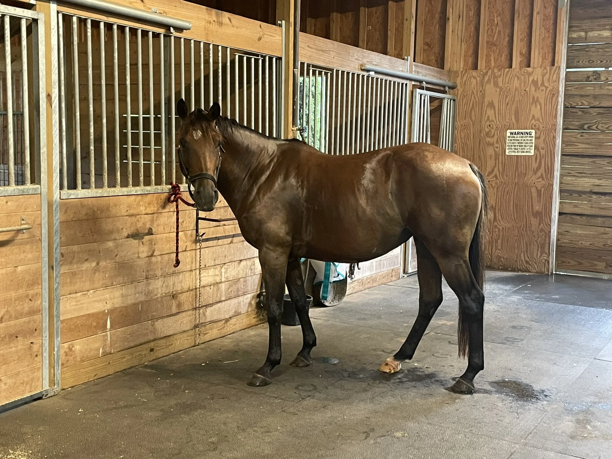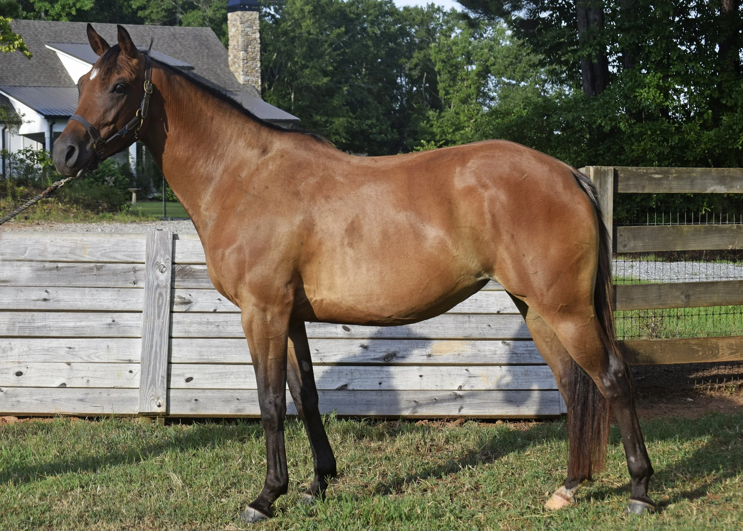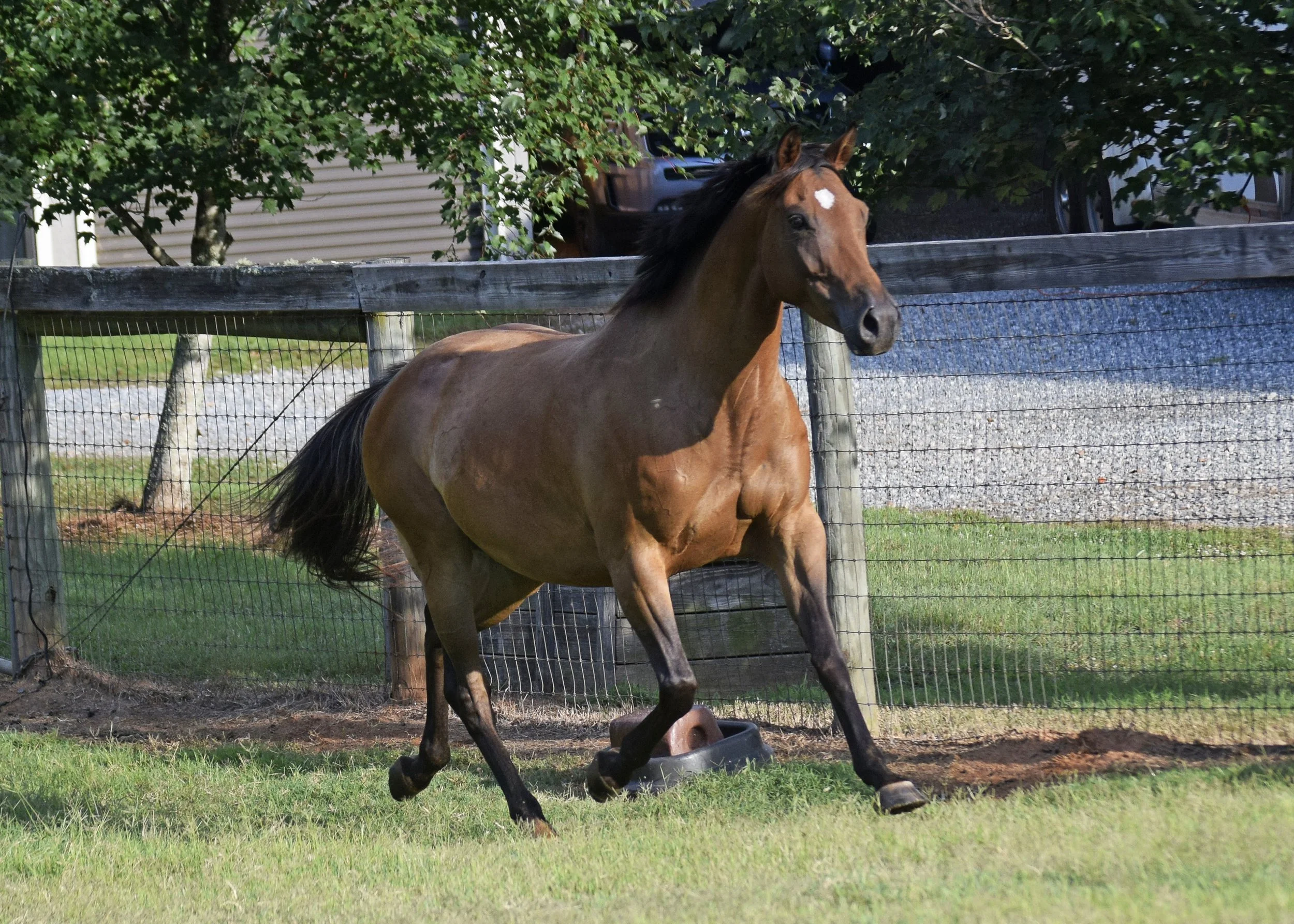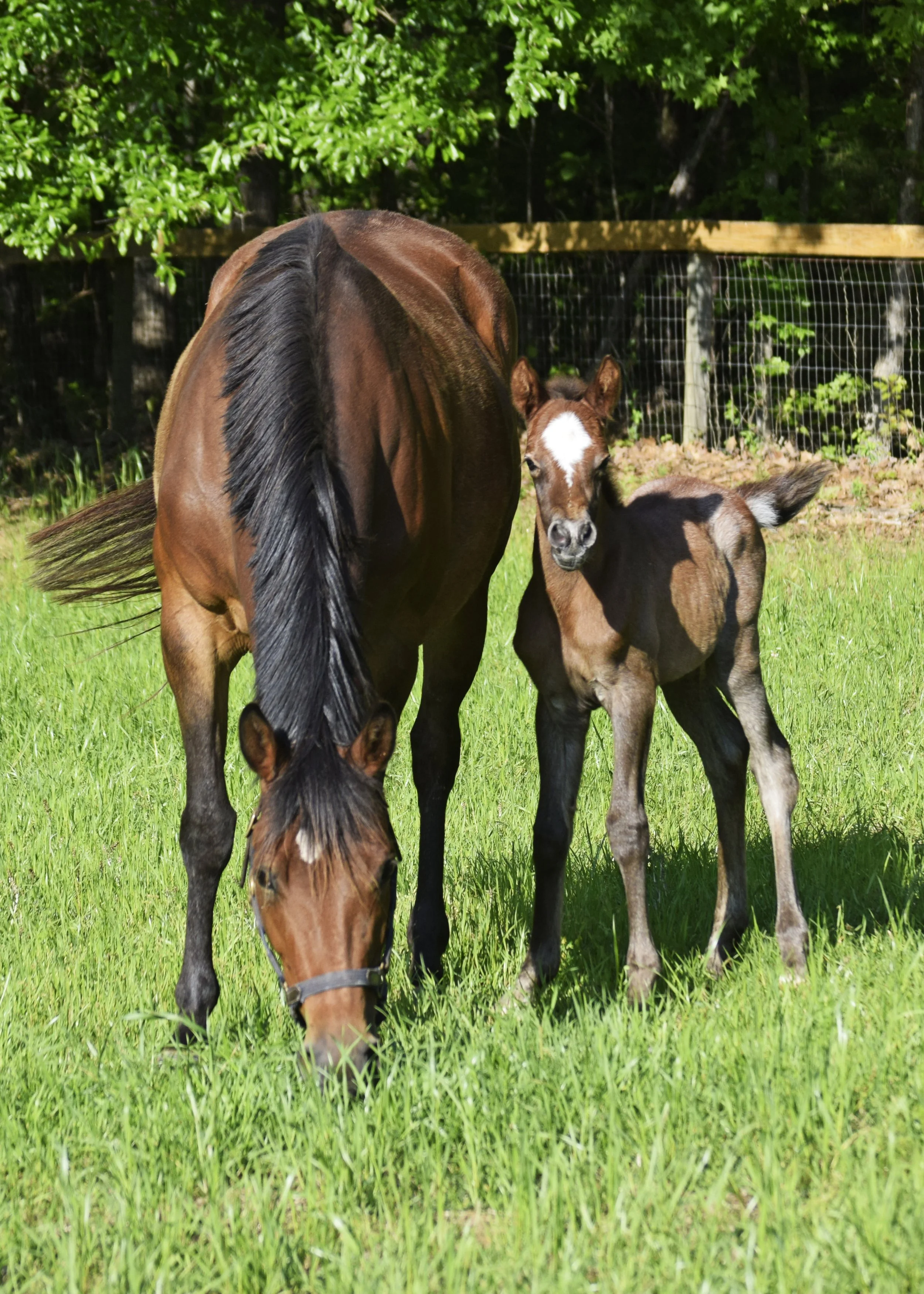'Sprite' is one of the most kind individuals we've ever bred. Sensible beyond her years, she was easy going and quiet from birth. She was sold to an AA as a coming 3 year old as a potential field hunter. Through a series of events and having who knows what done to her, she returned to us in 2022 quite ruined under saddle. She came from an auction barn, underweight, sour and fairly rogue under saddle. We rehabbed her and got her going under saddle again. We did have her jumping and even got her out hunting, but it was evident she was going to have some ongoing mental baggage so we decided (knowing that the brains are in there under the trauma) to breed her to Declan. She did have one foal by him as a 4 year old with her prior owner (he is hunting and eventing successfully) and then she had two while here for us. Both were purchased by the same AA who plans to do dressage and driving with them. Sprite is currently at Swift Level Farm in WV - where *Grange Finn Sparrow lived most of his life in the USA - she has had two foals for them and is turning into an exceptionally nice broodmare.