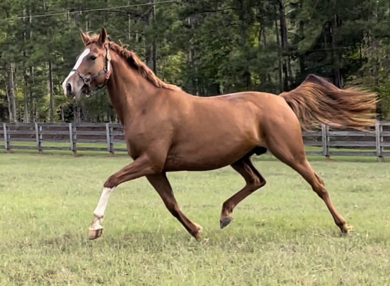 'Pippi' was born just weeks before her sire contested the 2015 World Cup in Las Vegas. We were fortunate enough to see him compete at the grand age of 19! Pippi was sold as a weanling to some friends of ours; they purchased her as an upper level eventing prospect and future broodmare for their sport horse program. She was lightly started under saddle at the age of 3 but unfortunately a catastrophic foaling at 4 eliminated the possibility of a ridden career. She has had a number of foals and was back here for a short stint in which time she produced two very nice foals by Declan. She is currently back with her owner, Starting Point Farm in GA.