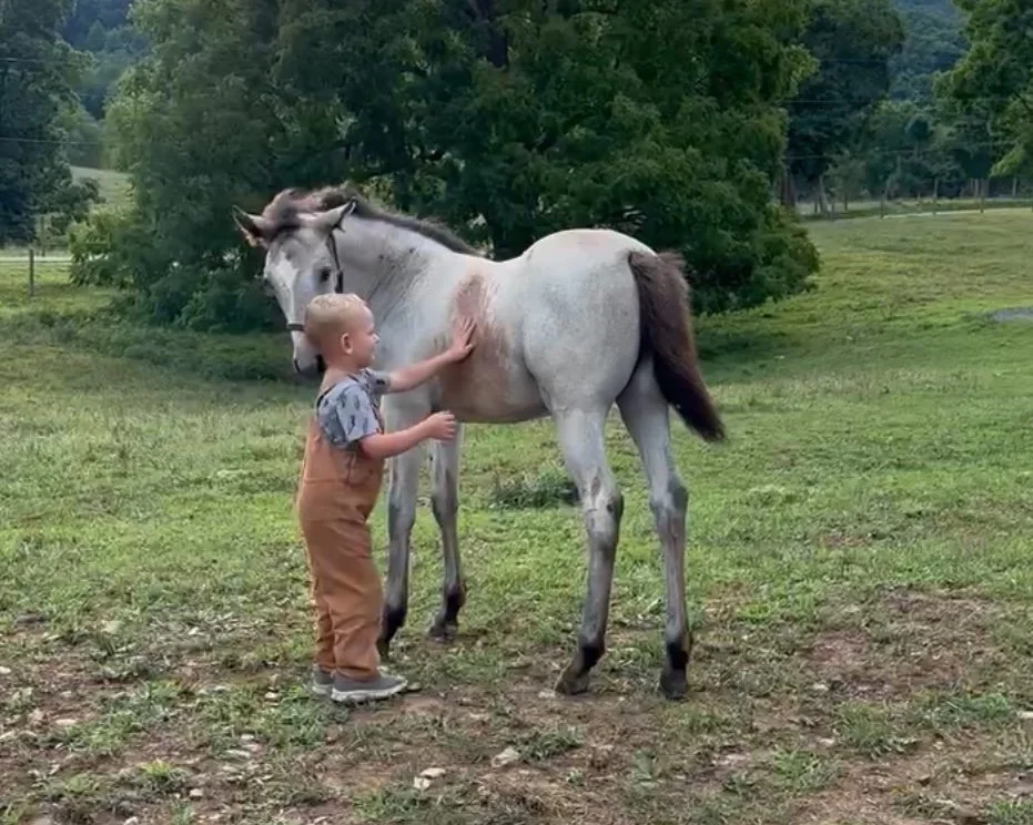 2024 Chestnut roan (grey) filly by *TBS Declan Pondi. Owned by Gabrielle Navarro of NC.